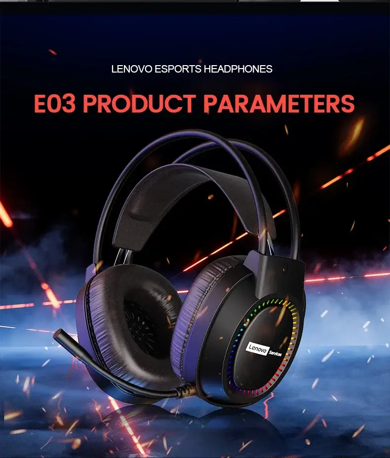 The Lenovo E03 Gaming Headset is a wired over-ear headset built for immersive audio and long-lasting comfort, ideal for gaming, multimedia, and everyday use. It combines powerful sound, clear voice communication, and ergonomic design at an affordable price point.